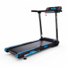 Электрическая беговая дорожка DFC X-Fit T-2Slim для домашнего использования предлагает эффективные и удобные тренировки благодаря компактной складной конструкции и вертикальному хранению. Эта модель оснащена 40 различными программами тренировок, включая режим тестирования жировых отложений, и пятью пользовательскими программами. Отличительной особенностью данной беговой дорожки является установленный механизм защиты питающей сети: индуктор вместе с сетевым фильтром. Данные элементы помогают подавлять импульсные помехи высокой и низкой частоты, а также защищают вашу беговую дорожку от кратковременных перепадов напряжения в домашней сети. Также данные элементы защищают другие ваши электронные приборы, подключенные к питающей сети от импульсных помех, которые могут возникнуть при эксплуатации беговой дорожки. При слишком высоком или слишком низком напряжении в вашей сети, рекомендуется установить стабилизатор. 5-дюймовый LCD-дисплей с синей подсветкой обеспечивает удобное отслеживание прогресса тренировки, отображая такие параметры, как время, скорость, дистанция, сожженные калории и угол наклона бегового полотна. Размеры бегового полотна составляют 120 см в длину и 45 см в ширину, обеспечивая комфортное и безопасное пространство для бега. Благодаря мощной деке дорожка выдерживает пользователя до 120 кг. Мощность двигателя составляет 3 лошадиные силы, а максимальная скорость может достигать 16 километров в час. Угол наклона бегового полотна может быть изменен электронным способом в диапазоне от 0 до 12 процентов, что позволяет адаптировать тренировку под различные уровни физической подготовки. Консоль дорожки оснащена двумя динамиками для прослушивания музыки во время тренировки и USB-портами для подключения внешних устройств, таких как смартфоны или планшеты. Также есть возможность подключения кардиомонитора для более точного отслеживания сердечного ритма во время тренировок. На бортах бегового полотна есть специальные нескользящие боковые подножки для начала тренировки: перед тренировкой встаньте на них, а затем запустите тренажёр.