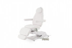 Стол имеет четыре секции, которые можно регулировать по углу наклона и положению. Это позволит подобрать наиболее комфортную позу для конкретной процедуры. Регулировка высоты стола – электрическая. Всего кресло имеет три мотора, благодаря которым можно быстро настраивать данное оборудование. Максимально возможная нагрузка на конструкцию составляет 180 килограмм. Модель способна раскладываться в полностью горизонтальное положение. Есть удобные подлокотники, которые можно снимать, если этого требует процедура.